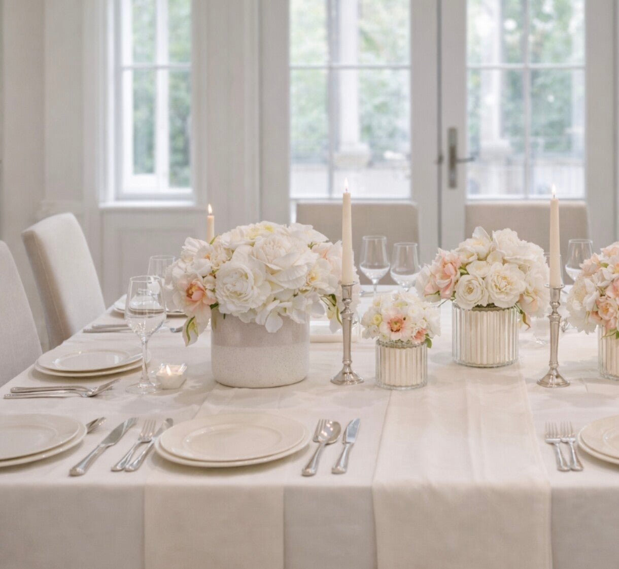 Tauchen Sie ein in die Welt der 'Weißen Eleganz', eine Seidenblumen-Kollektion, die Reinheit und Raffinesse in jedem Detail widerspiegelt.